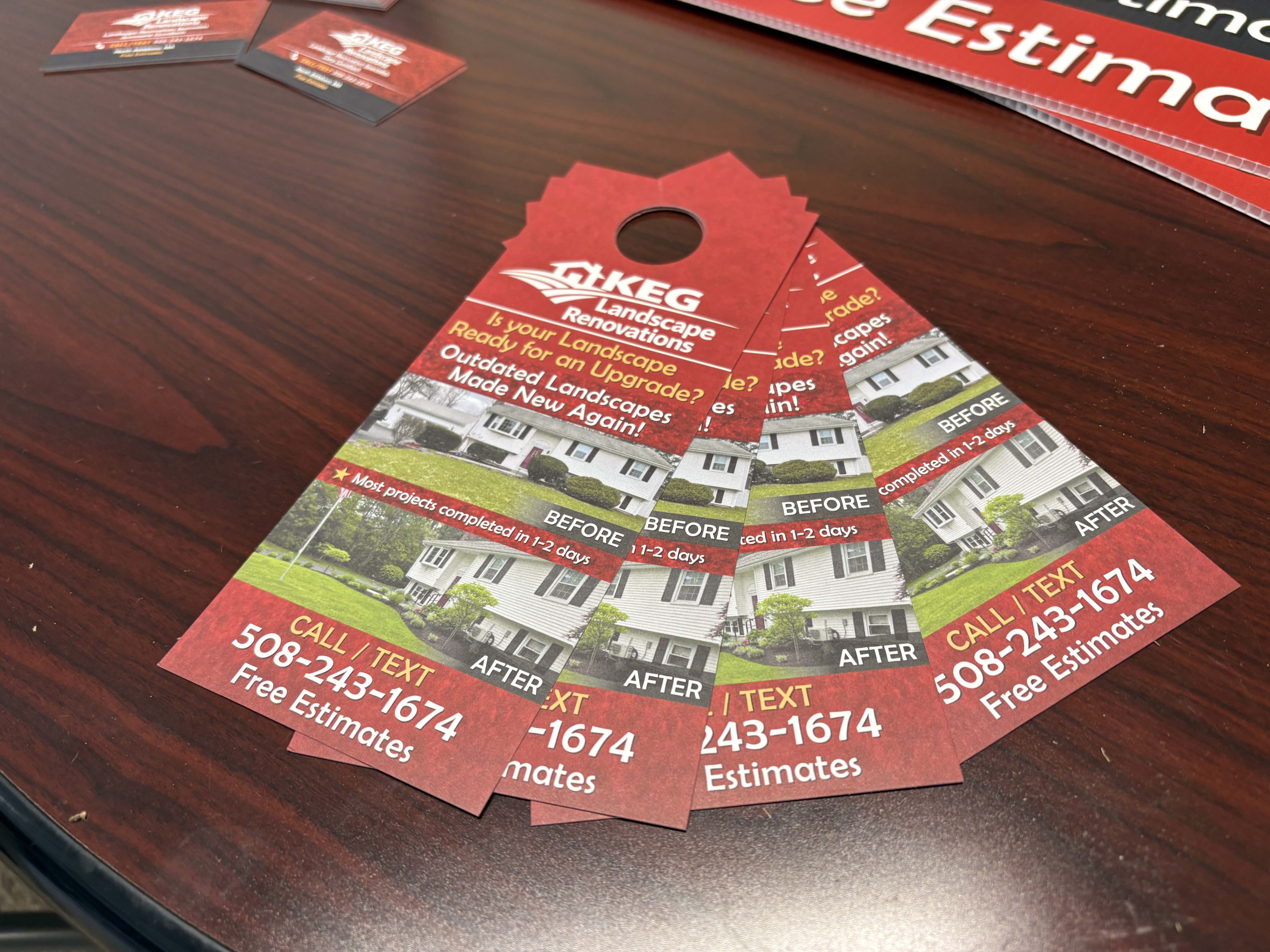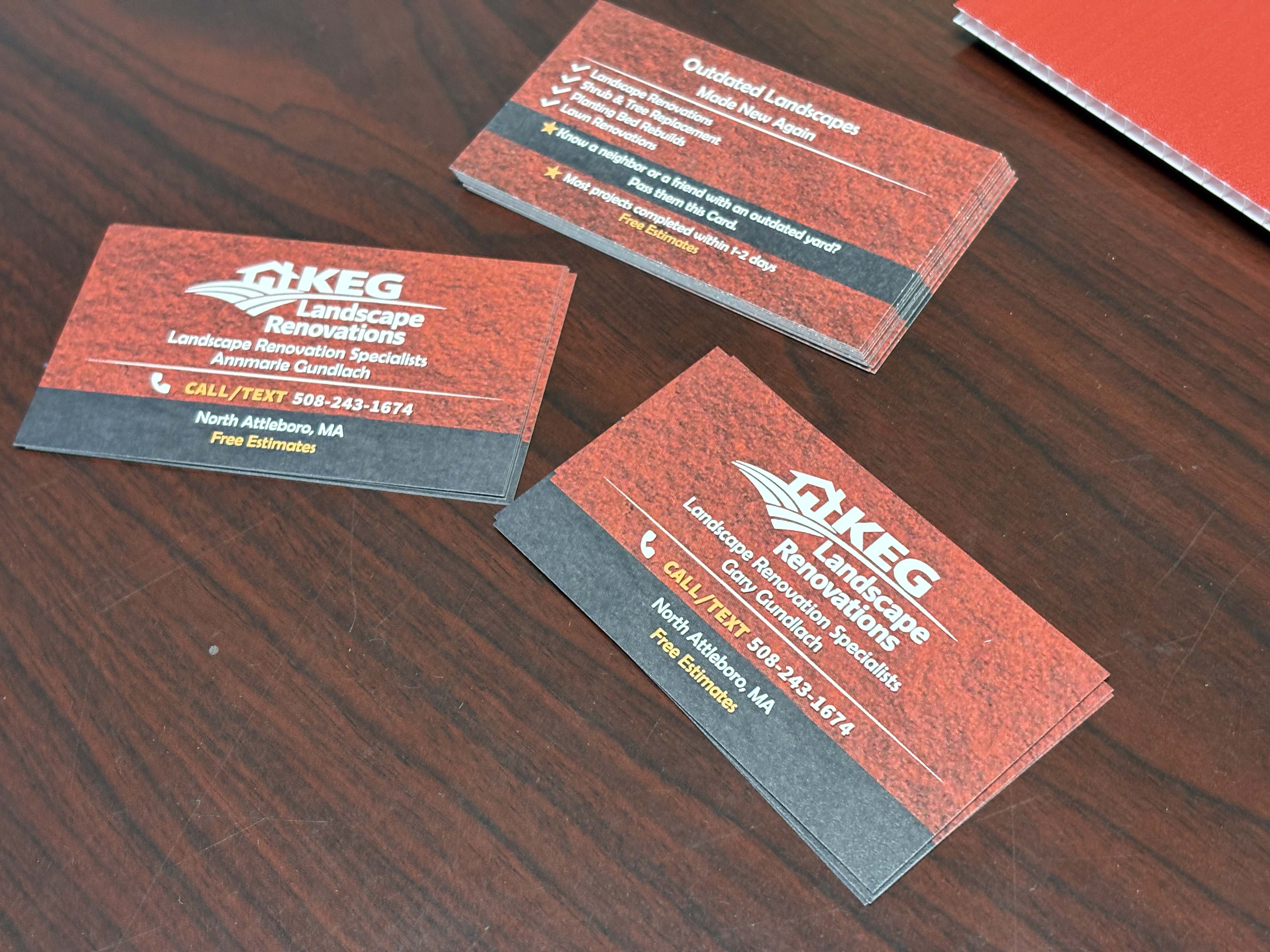 After final review and client approval, all assets were delivered to our print team for production. Within a week, the finished materials arrived, giving KEG Landscape Renovations a polished, unified brand presence they could confidently use both online and in the field.
