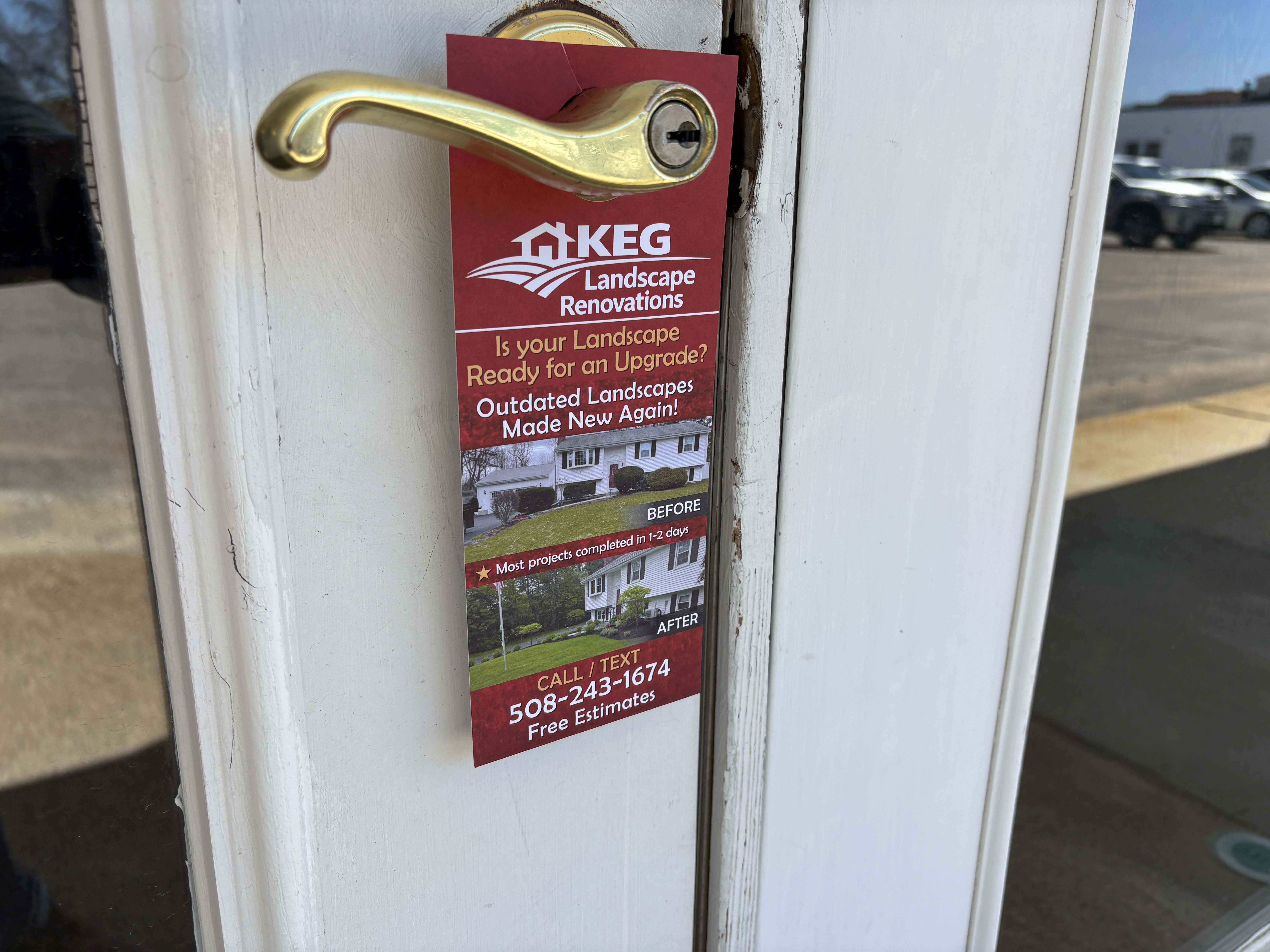 After thoughtful discussions, KEG Property Maintenance decided to embrace AI and rebrand as KEG Landscape Renovations. The new name more accurately reflected the company’s direction, the services they aimed to expand, and the image they wanted to present to customers. With that decision made, they entrusted MM5 Digital Marketing with bringing the new brand to life through the design of a new logo, business cards, door hangers, lawn signs, T-shirts, and sweatshirts.